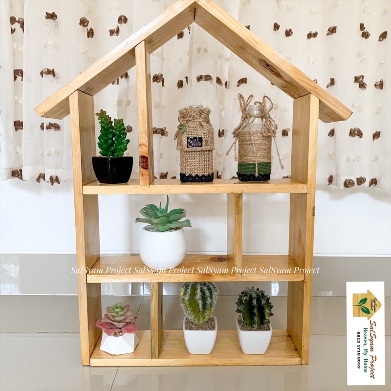 Jual Rak Dinding Rak Hias Bentuk Rumah Dekorasi Rustic Rak Serbaguna Rak Minimalis Papan Jati Belanda Shopee Indonesia